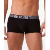 A low rise trunks with a modified contour pouch for maximum boost. No show rise. Contour maximize pouch. Fabric content 96% Modal, 4% Spandex. Color Black. Men size large. Waist 34 inches to 36 inches.