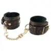 Brown Floral Print PU Ankle Restraints is Lined with Soft Black Faux Fur Lining and Comes with Golden Hardware. Nickel-Free Hardware. Locking Buckle.