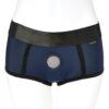 Sportsheetts Em Ex Active Wear Harness Fit Harness Blue Large. Split Sides for extra pleasure. An active life style demands a comfortable, all day, all night harness. Em Ex was designed for durability, comfort, and fit. The soft fabric provides stretch while keeping accessories firmly secure. With its durable elastic waist band and nitrile rubber O-ring, you can fly the friendly skies as TSA will never know you are wearing it.