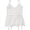 Lace Long Line Bra, Garter Belt & G-String White O/S
