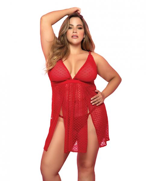 Mesh Printed Babydoll W/g-string Red 2x/3x
