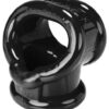 Super stretchy and tough, but firm and feels great on. Compatible with most lubes, oil based not recommended, wash with warm soapy water and air dry, store separately. From Oxballs.