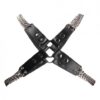 The harness that makes the perfect addition to any BDSM lover's collection. This heavy-duty harness serves fetish realness when worn over clothes, and lets your playmate know what they're in for in the bedroom. The perfect finishing touch to a bondage fuelled night in, or a party night out. Strap yourself into this studded harness to enhance what nature gave you.The harness features 2 metal O-rings that are perfect for attaching chains, leads and other BDSM accessories. Totally adjustable at the neck, waist and chest for a perfect fit, this harness moves seamlessly from everyday wear to private parties of the very naked variety.The chests strap is adjustable from 92 cm to 120 cm and the shoulder straps are adjustable from 54 cm to 75 cm.