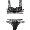 Lace Caged Bra with Not Your Bitch Adjustable Elastic Straps and Matching Cutout Panty from Fantasy Lingierie Vibes line. Features thick adjustable straps. Lace underwire cups. Trendy caged look. Matching panty.